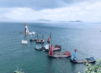 The project scope includes laying a sand cushion layer on the seabed surface of the embankment and the lower part of the seawall, with a thickness of 2 meters. Our company is responsible for executing this construction work, which involves approximately 200,000 cubic meters of sand laying over a 5-month construction period.