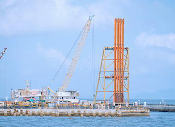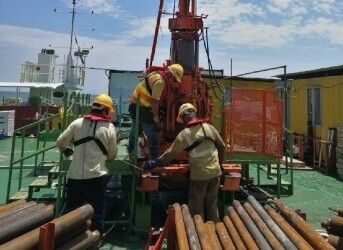 The offshore survey for this project comprises two key components: CPTU static cone penetration testing and core testing, which involve drilling 3 meters below the weathered rock layer. Core testing further includes drilling core sampling, standard penetration tests (SPT), vane shear tests (VST), and drilling water injection tests.