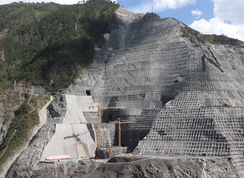 Dagang Muntain Hydropower Station is located in Dujiao Township, Shimian County, Sichuan Province. It is the 14th cascade power station planned for the Dadu River trunk stream. It has a 210m high concrete double-curved arch dam with the world's highest seismic fortification standard, a total storage capacity of 742 million cubic meters, and a total installed capacity of 2,600 MW(4×650MW). The hub of the power station was mainly composed of concrete hyperbolic arch dam, flood discharge and energy dissipation buildings, water diversion and power generation buildings, etc. The construction began on March 15, 2011 and was completed on August 31, 2016.