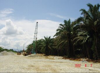 This project in the Philippines aims to expand the BACONG bridge route from two lanes to four lanes to accommodate increased traffic demand. The widened section of the roadbed was treated using vibro-compaction gravel pile technology, with a designed pile diameter of 1 meter, a pile length of 15 meters, and a triangular pile layout.