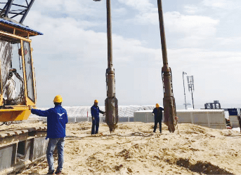 The project site features a foundation composed of blowing sand, silt, and clay. Foundation treatment was conducted using the vibro-pumping process, designed to a depth of 25 meters with a point spacing of 2.8 meters, covering a total treatment area of 800,000 square meters. Post-treatment results show an average composite foundation compactness of 90%, with settlement limited to 60 centimeters or less.