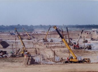 This project, which included the main workshop, chimneys, and cooling towers, was the first in China to employ vibro-stone column technology for ground improvement in a 600MW unit. Construction began in June 2001 and was completed in October 2001. The site’s main strata consisted of fine sand and medium-coarse sand. Using 75kW vibroflot equipment, the project constructed 7,688 vibro-stone columns with a diameter of 1,100 millimeters, arranged in an equilateral triangular layout with a spacing of 2,300 millimeters.